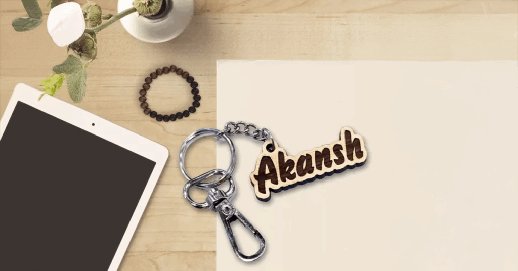 Small but meaningful—name-engraved keychains. Choose from wooden engraved designs, name cut-outs, or photo-printed styles.
