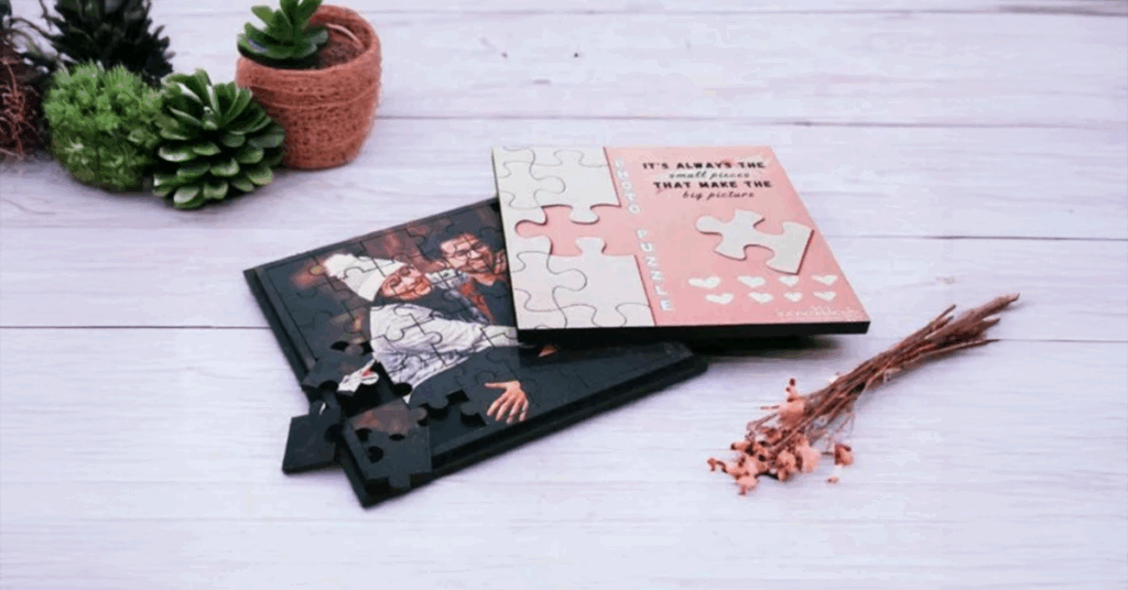 Make them piece the memories together—literally! A personalized puzzle photo frame adds a playful twist to gifting. It’s a great indoor activity and ends up as a heartwarming décor piece once completed.