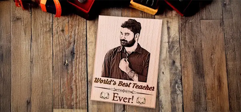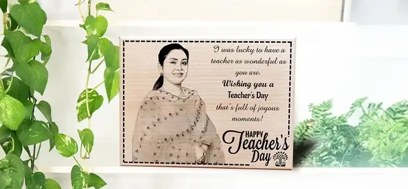 Capture your memories in a custom wooden photo frame designed specifically for Teachers’ Day. You can add a class photo, a candid moment from school, or a snapshot from a farewell party—along with an engraved quote like “A teacher affects eternity.”