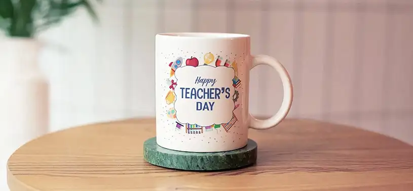 Let your teacher enjoy their chai or coffee in a custom mug printed with their name, subject, or even a quote like “World’s Best Teacher”. You can also add a photo or doodle for a more fun-loving, personal touch.
