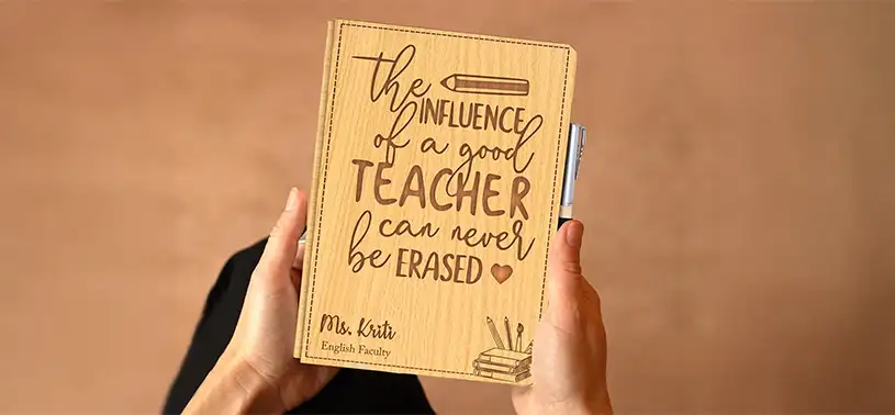 Help your teacher organize their thoughts and plans with a diary & pen wrapped in a custom wooden cover. Personalized with their name and a quote, this diary is practical and premium—a classy gift for teachers who love to write or plan meticulously.
