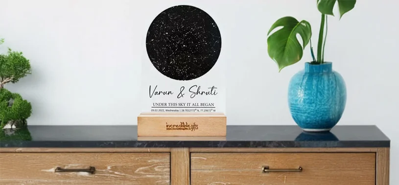 Star Map Constellation Frame: This gift is meant to remind your partner that your relationship happened because the universe wanted you both together. People often say that couples are created in heaven, and stars feel like the closest representation of both the universe and heaven. That is what makes this gift so special.