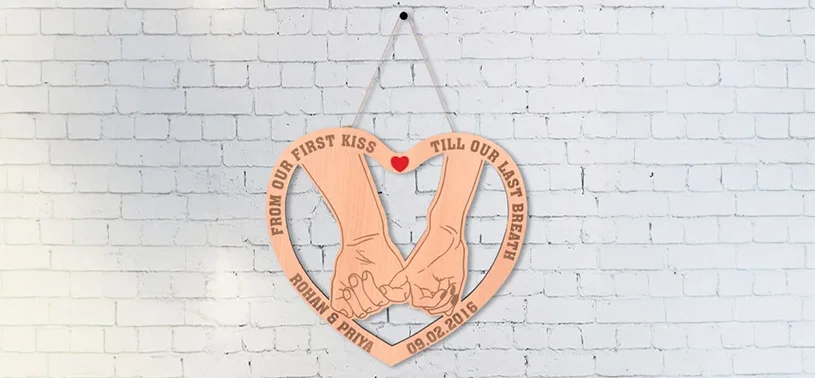 Pinky Promise Heart Shape Sign: This sign is a really beautiful and meaningful gift because it represents love, promise, and togetherness. It is made of wood and has a heart shape in the centre. Inside the heart, there are a boy’s and a girl’s hands making a pinky promise to each other. At the top centre of the heart, there is a small pink heart that represents your love for your partner.