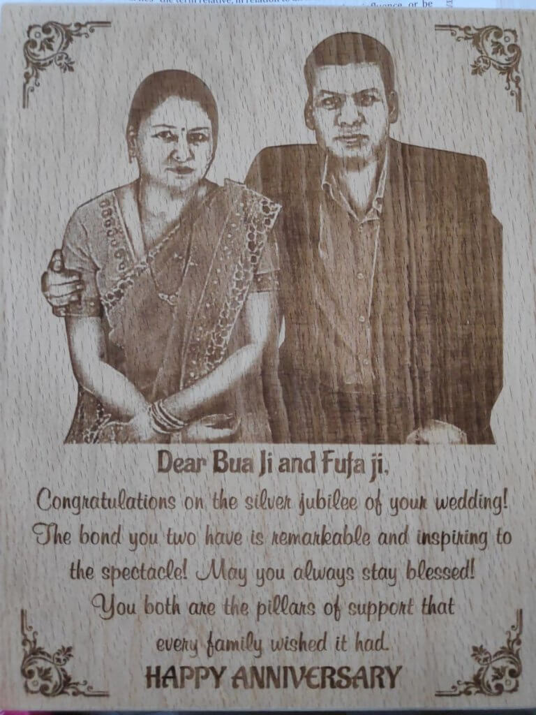In conclusion, our Wooden Engraved Photo Frame is more than just a decorative accessory; it’s a symbol of enduring love, cherished memories, and shared experiences. With its exquisite craftsmanship, personalized touch, and timeless appeal, it stands as a testament to the bond forged over 25 years of marriage, making it the perfect gift for celebrating the silver wedding anniversary and beyond.
