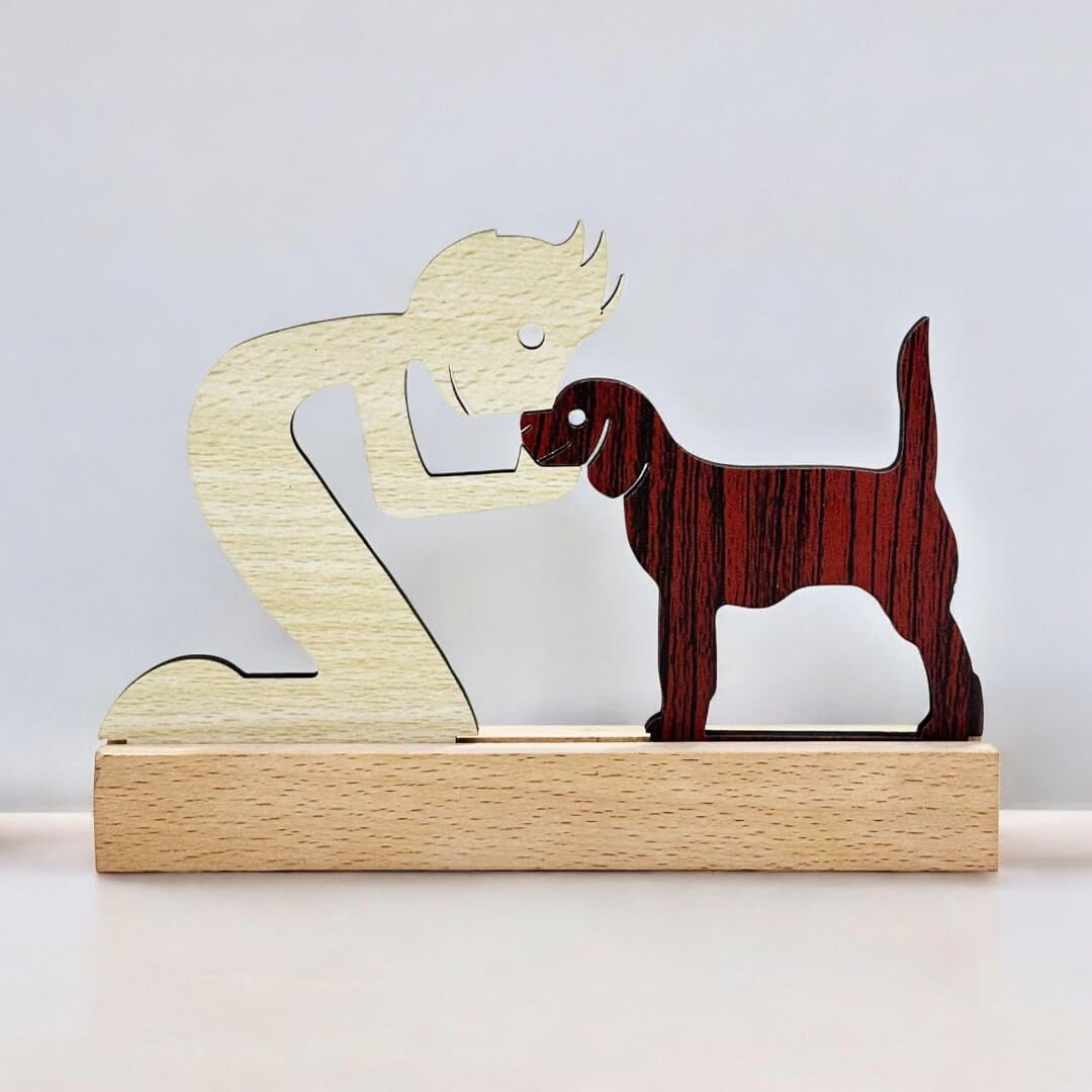 Celebrate the unconditional love between a boy and his pet with this stunning wooden sculpture for pet lover. Designed to capture the essence of companionship and loyalty, this piece is a heartfelt tribute to the bond shared between pet parents and their furry friends. The sculpture features an elegant design with smooth curves and intricate details, making it a timeless addition to any space.