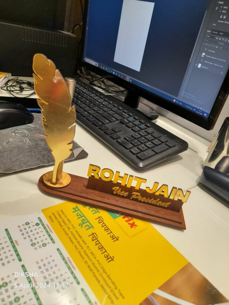 Crafted with precision from premium wood, our wooden desk name plates add a touch of warmth and elegance to your desk. Not just a beautiful addition to your desk, this unique desk name plate also features a carefully designed pen holder stand. Now you can keep your writing essentials organized and easily accessible with this personalized desk nameplate and pen stand for desk.