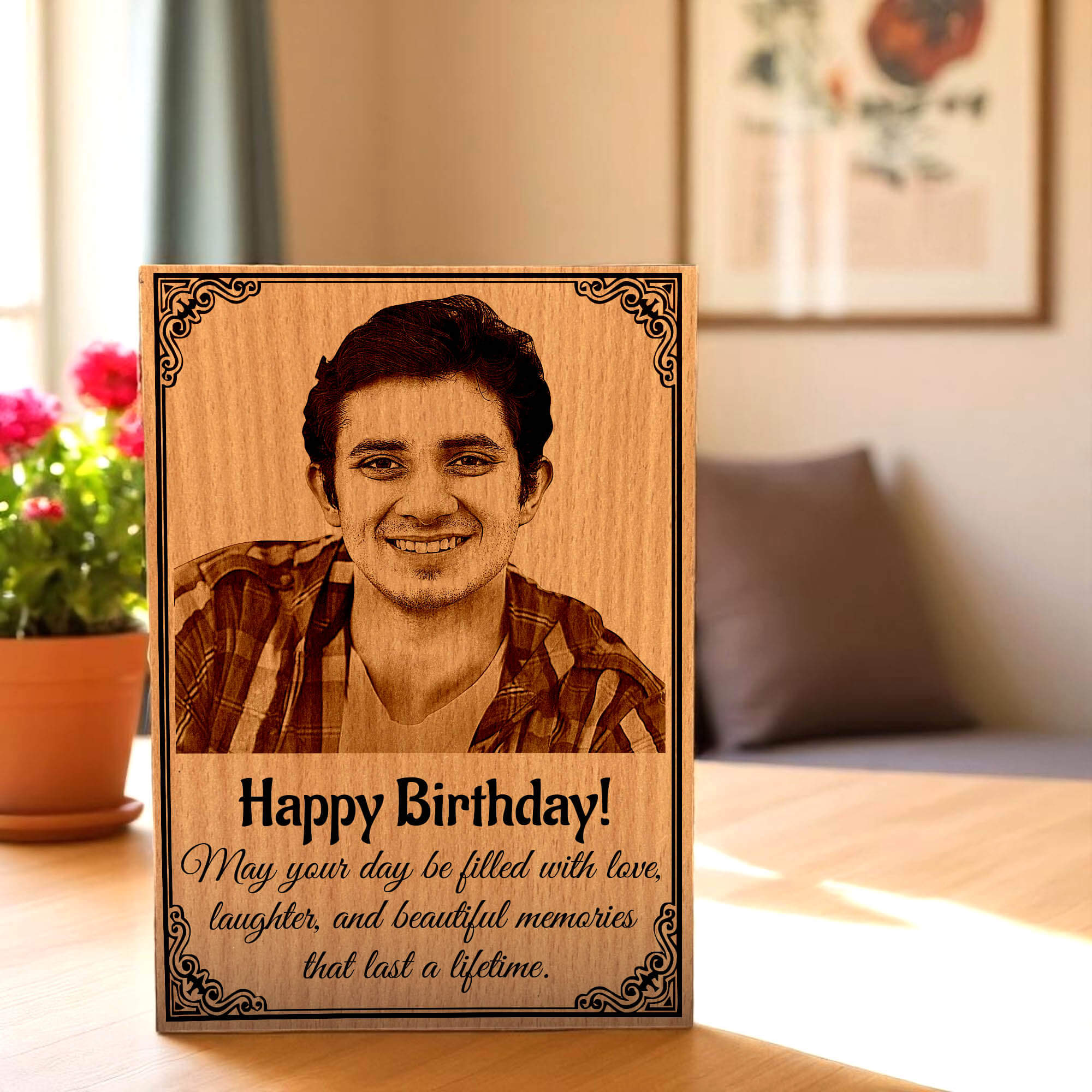 Make birthdays unforgettable with this elegant MDF wooden photo frame, designed to hold your most precious moments in style. Whether it’s for a friend, sibling, parent, or partner, this frame adds a personalized touch to your gift, making it stand out from the usual presents.