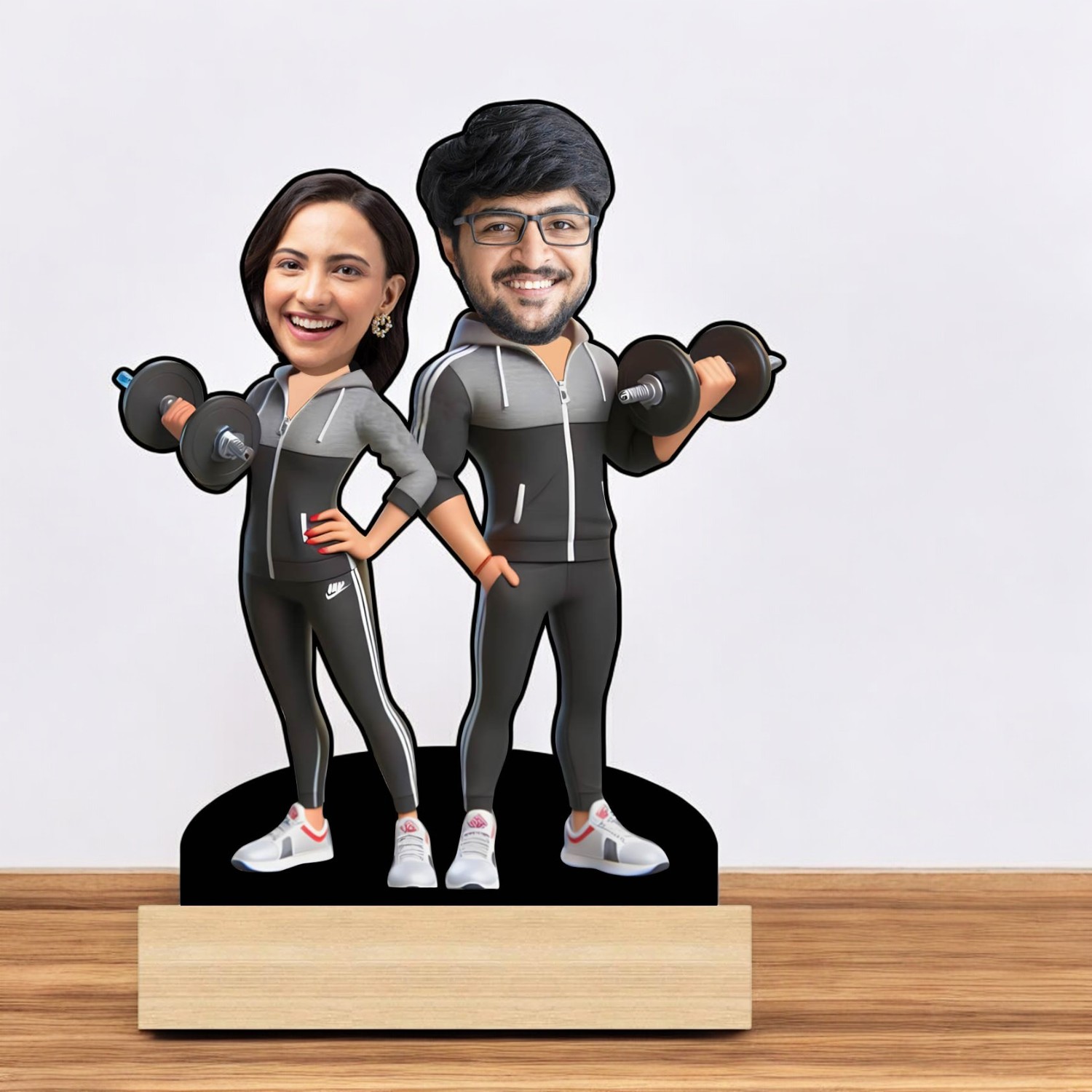 A fun and unique way to showcase the love and fitness goals of a gym-loving couple through a personalized caricature. This products comes in a size of 8×6 Inches.