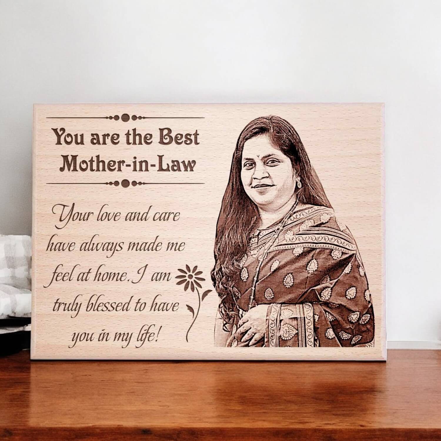 This gift for mother-in-law is designed to preserve cherished moments, making it one of the most unique gift ideas for mother-in-law. Its durable wooden build and precise engraving ensure a long-lasting impression, making it the best gift for mother-in-law for any occasion. Whether you are celebrating her birthday or looking for Mother’s Day gifts for your mother-in-law, this photo frame adds a personal touch.