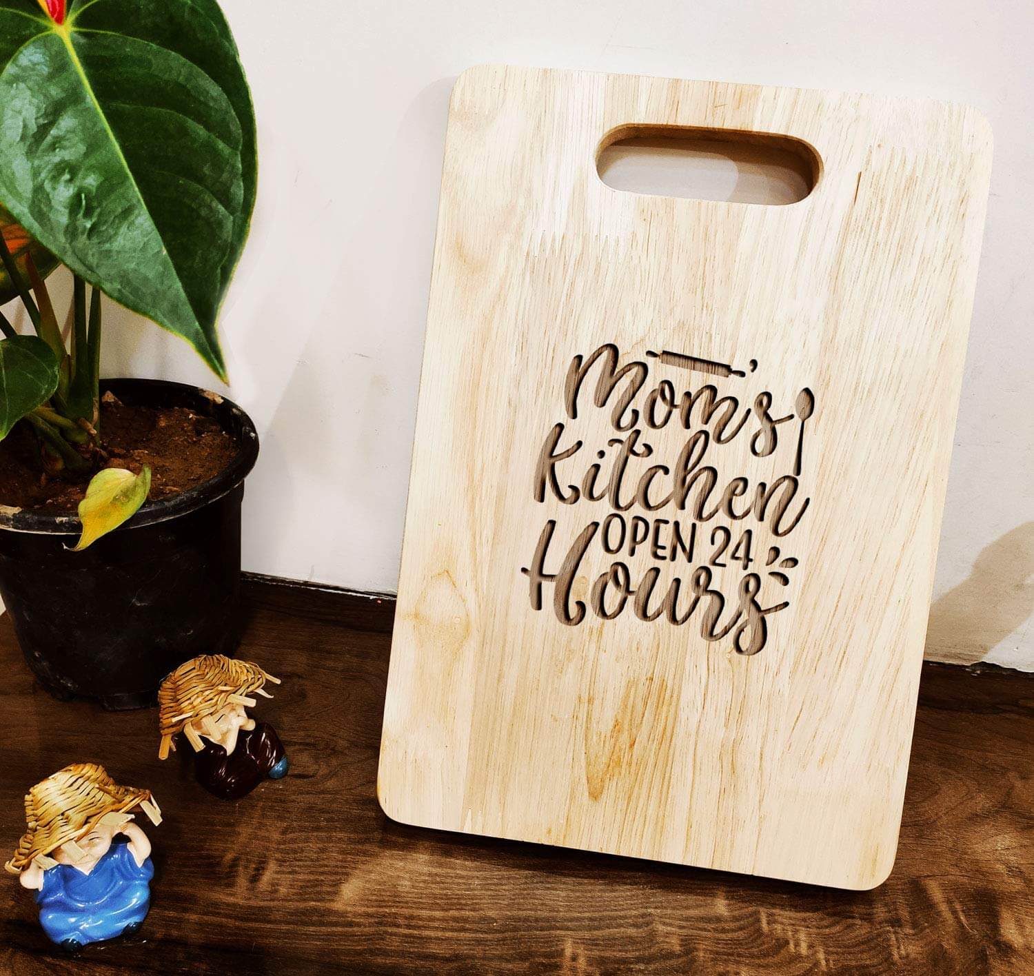 MATERIAL-SIZE: Rubber Wood, Size : 29.5x20cm, 1.5cm Thick, Type: Engraved Chopping Board Wood