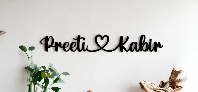 If she loves decorating her room with cute items, a customized wooden name wall emblem is perfect. It can be customized with her name, your couple name, or her unique nickname. For example, the nickname Roy Joy, maybe because sometimes she cries (“Roy,” a playful twist on Riya) for small reasons and then becomes happy again (“Joy”).