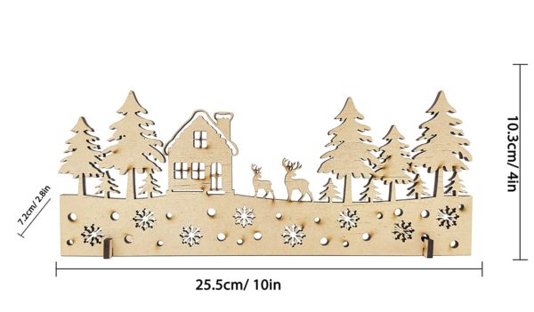 Christmas ornament was laser cut from high quality MDF plywood, has thickness of 4mm, which is strong enough to stand.