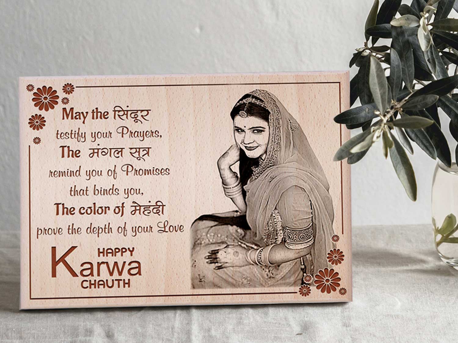 Personalized Engraved Wood Photo Frame Gift for Karwachauth