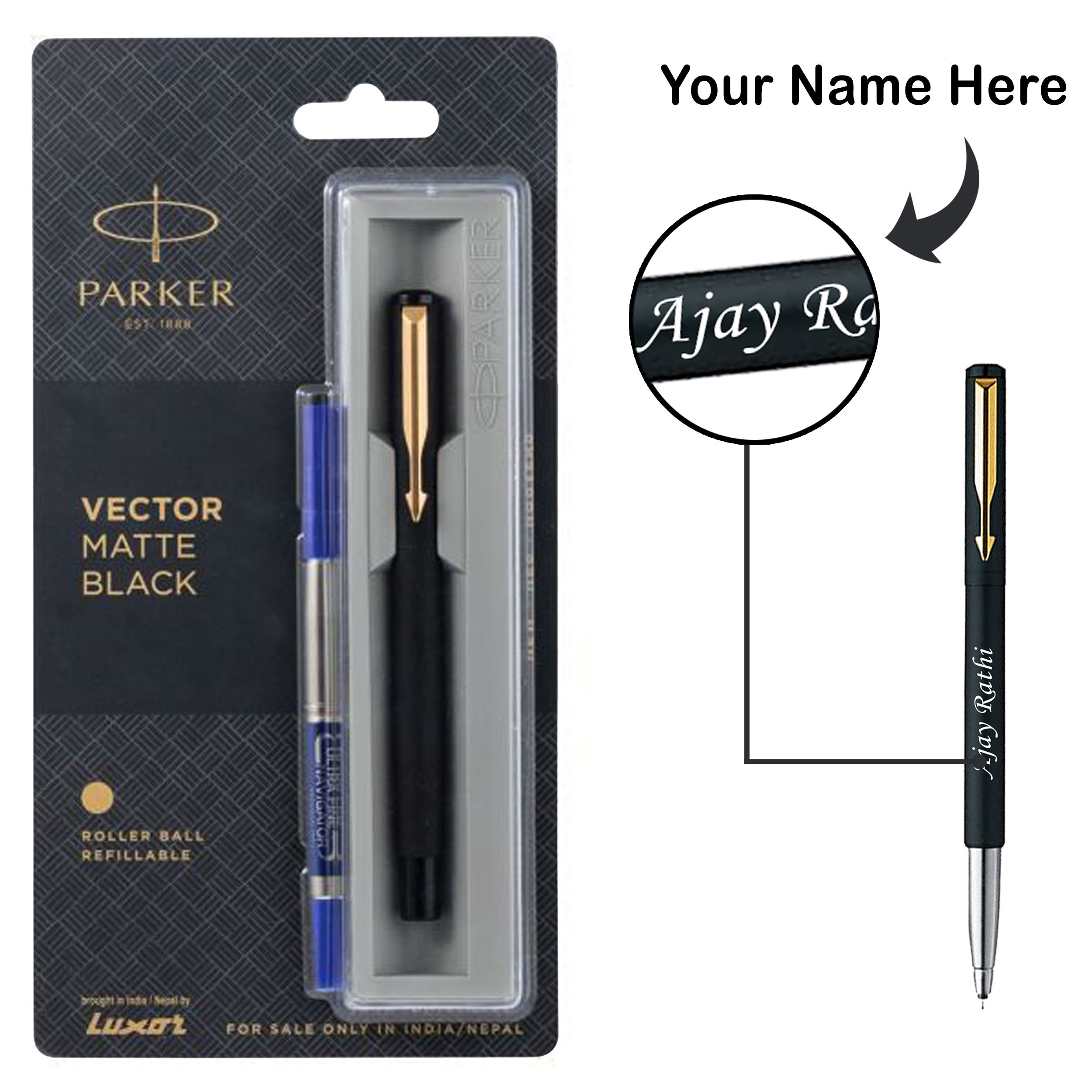 - One Parker Vector Matte Black With Gold Trim Roller Ball Pen